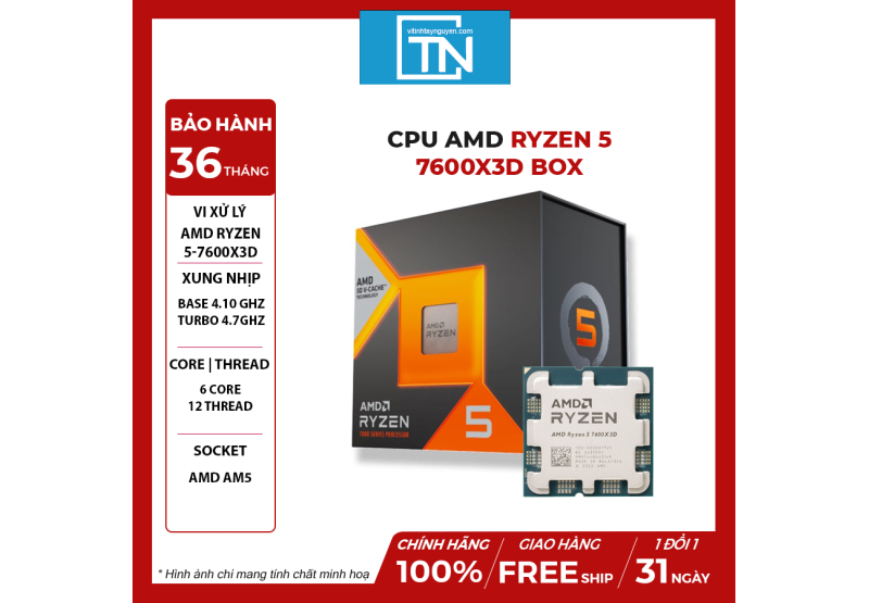 AMD Ryzen 7 7600X3D là dòng CPU AMD mới chuyên phục vụ chiến game đỉnh cao. Với công nghệ 3D V-Cache đột phá, CPU này sẽ đưa trải nghiệm chơi game của bạn lên một tầm cao mới. 8 nhân 16 luồng mạnh mẽ cùng bộ nhớ cache khổng lồ đảm bảo mọi tác vụ, từ các tựa game AAA đồ họa khủng đến livestream, đều trở nên mượt mà và ổn định.
